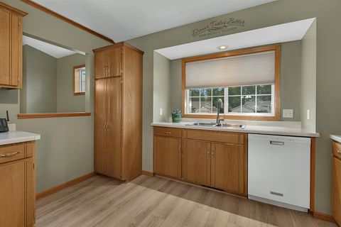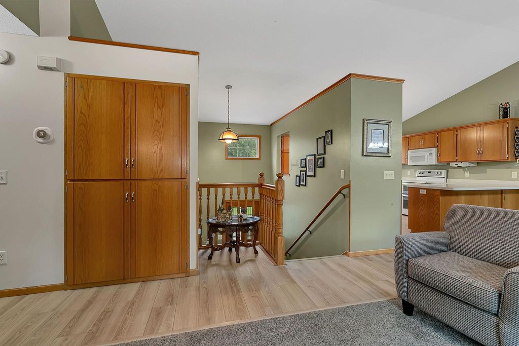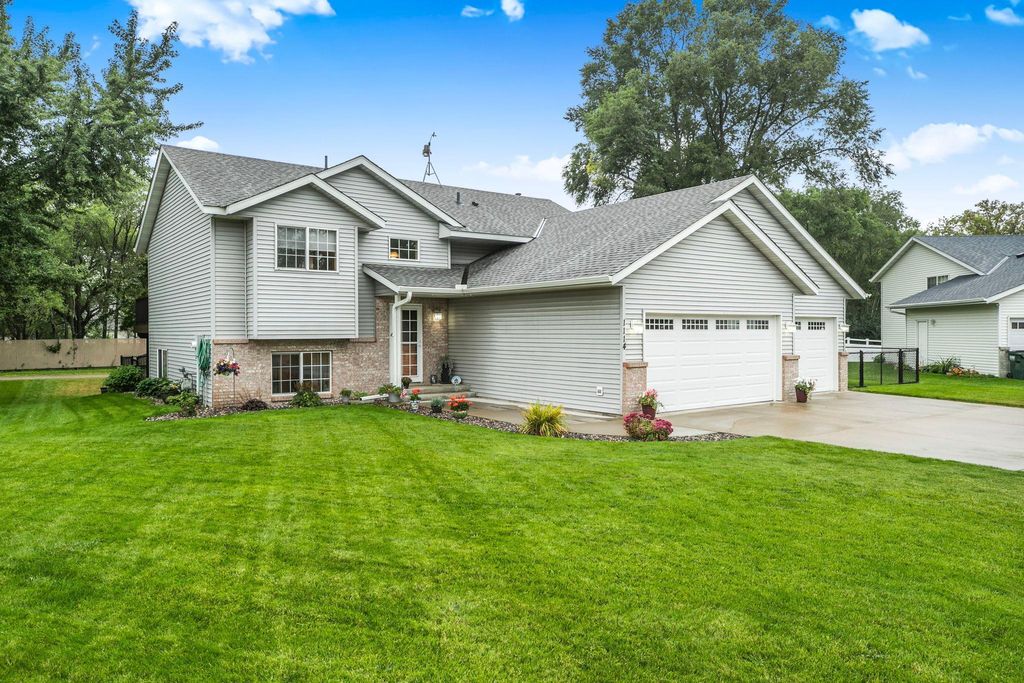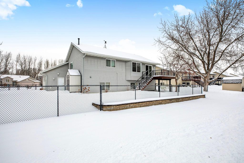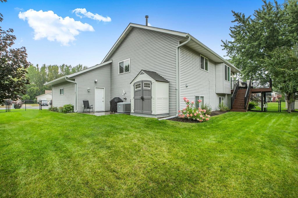 Beautiful Bi level Home Awaits! Beautiful kitchen offers oak cabinets, double pantry w/pull outs, cook top stove, double oven, microwave, side by side refrigerator, dishwasher and snackbar. Good size dining room w/patio doors leads to 11x12 updated & maintenance free deck over looking fenced in backyard. Living room offers bump out, vaulted ceiling, oak banister. Both upstairs bedroom offer walk in closet. Lower level offers spacious family room w/gas fireplace for our chilly weather to come. 2 good size bedrooms, 3/4 bathroom and laundry room w/sink is completely finished too. Good size foyer offers ceramic tile floors and double hanging closet. Now for the updates: Roof & gas water heater 2023, 2022 furnace & AC, kitchen sink, new flooring kitchen, dining room and hallway, new carpeting in bedrooms & steps, updated insulated garage doors, gas heater & Wi-Fi garage door openers, workbench & attic access. South & west upper windows replaced, 2015 seamless gutters, leaf guard installed on south side. Over 2100 sq ft finished, oak wood work through out, ceramic tile floors in foyer, updated blinds in home too. Private patio overlooks fenced in backyard, 12x14 storage and swing under deck. Check out the fire pit w/pavers and nicely landscaped and sprinkler system to. Close to public transportation, easy access to Hwy 15 & 94. What A Great Place To Call Home! GRAVEL ROAD SOUTH SIDE OF HOME .... WILL REMAIN A PRIVATE ROAD & USED FOR THE 55+ APARTMENT BUILDING THAT IS UNDER CONSTRUCTION DATE SUMMER 2026. ROAD WILL BE ASPHALTED AFTER COMPLETETION PER MONICA AT WAITE PARK CITY HALL.