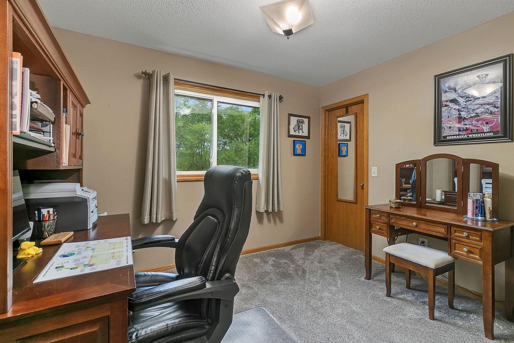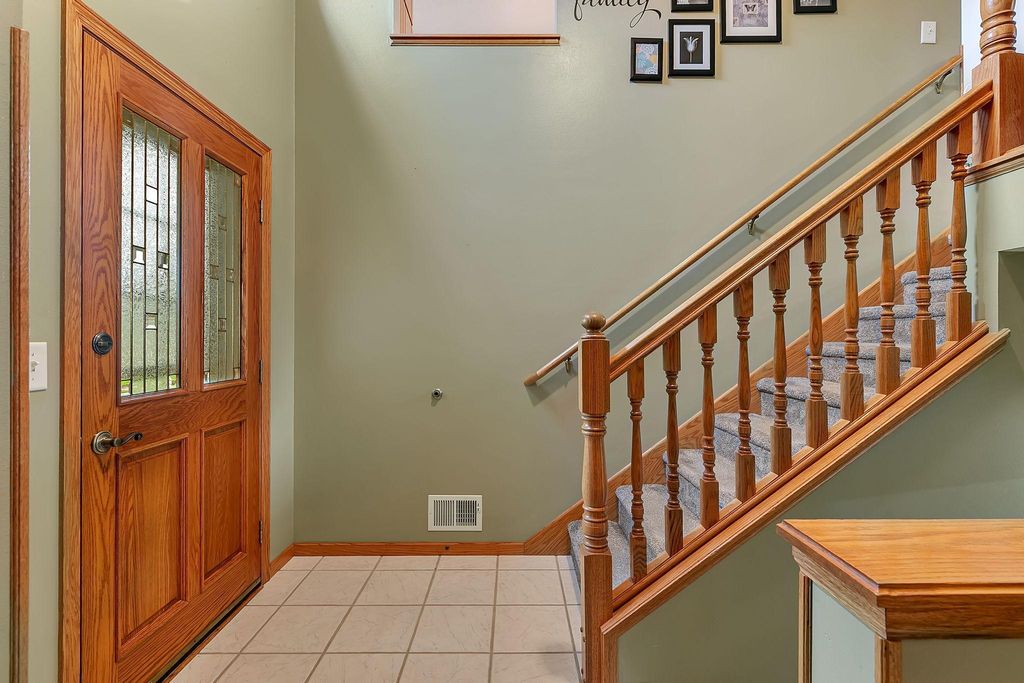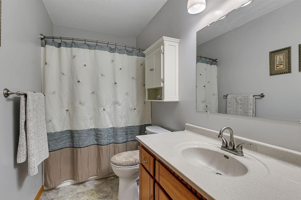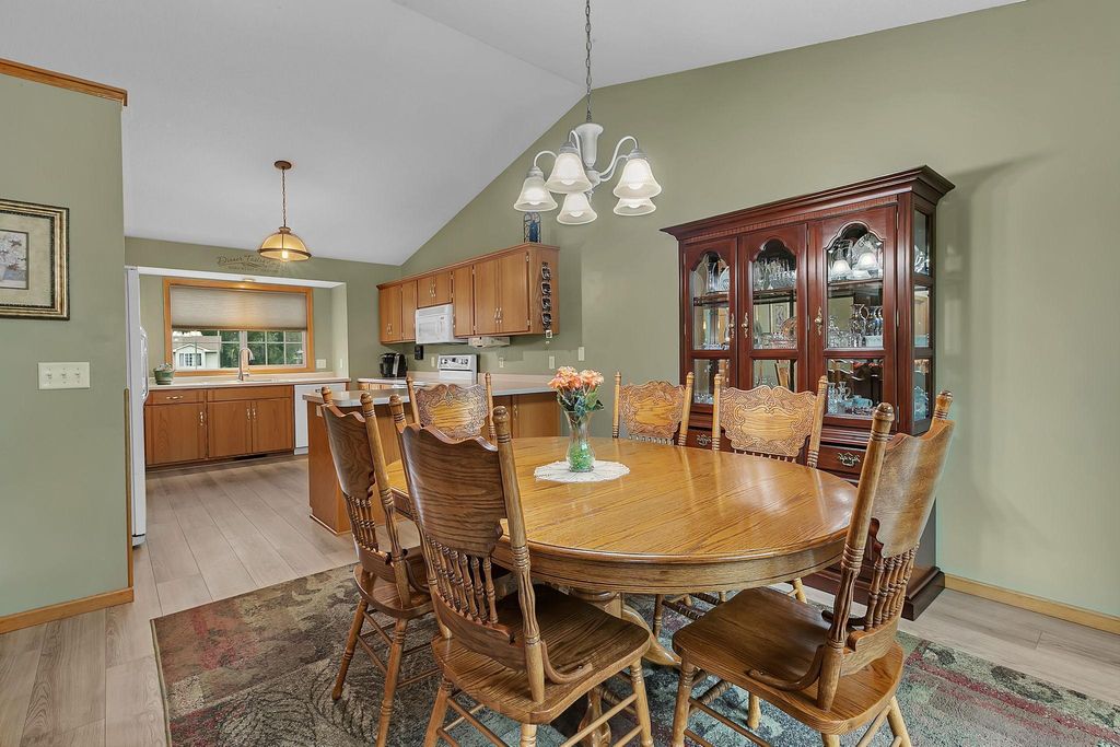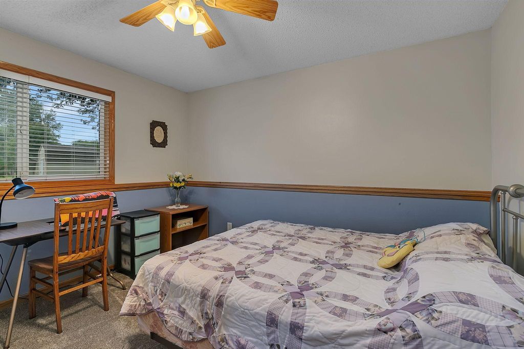 Beautiful Bi level Home Awaits! Beautiful kitchen offers oak cabinets, double pantry w/pull outs, cook top stove, double oven, microwave, side by side refrigerator, dishwasher and snackbar. Good size dining room w/patio doors leads to 11x12 updated & maintenance free deck over looking fenced in backyard. Living room offers bump out, vaulted ceiling, oak banister. Both upstairs bedroom offer walk in closet. Lower level offers spacious family room w/gas fireplace for our chilly weather to come. 2 good size bedrooms, 3/4 bathroom and laundry room w/sink is completely finished too. Good size foyer offers ceramic tile floors and double hanging closet. Now for the updates: Roof & gas water heater 2023, 2022 furnace & AC, kitchen sink, new flooring kitchen, dining room and hallway, new carpeting in bedrooms & steps, updated insulated garage doors, gas heater & Wi-Fi garage door openers, workbench & attic access. South & west upper windows replaced, 2015 seamless gutters, leaf guard installed on south side. Over 2100 sq ft finished, oak wood work through out, ceramic tile floors in foyer, updated blinds in home too. Private patio overlooks fenced in backyard, 12x14 storage and swing under deck. Check out the fire pit w/pavers and nicely landscaped and sprinkler system to. Close to public transportation, easy access to Hwy 15 & 94. What A Great Place To Call Home! GRAVEL ROAD SOUTH SIDE OF HOME .... WILL REMAIN A PRIVATE ROAD & USED FOR THE 55+ APARTMENT BUILDING THAT IS UNDER CONSTRUCTION DATE SUMMER 2026. ROAD WILL BE ASPHALTED AFTER COMPLETETION PER MONICA AT WAITE PARK CITY HALL.