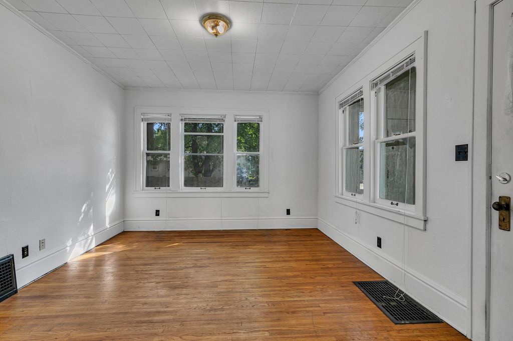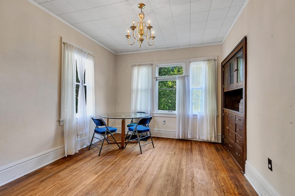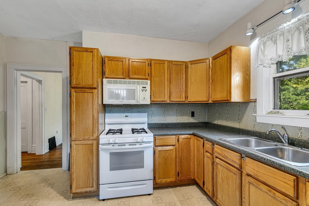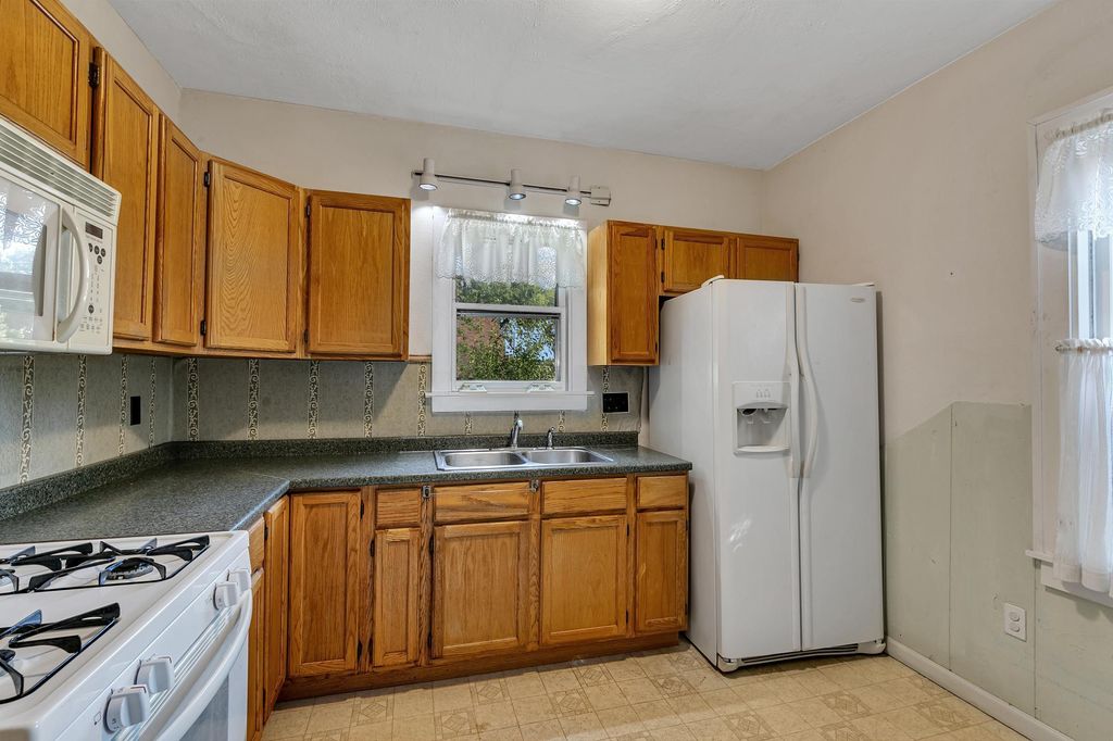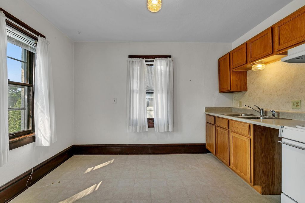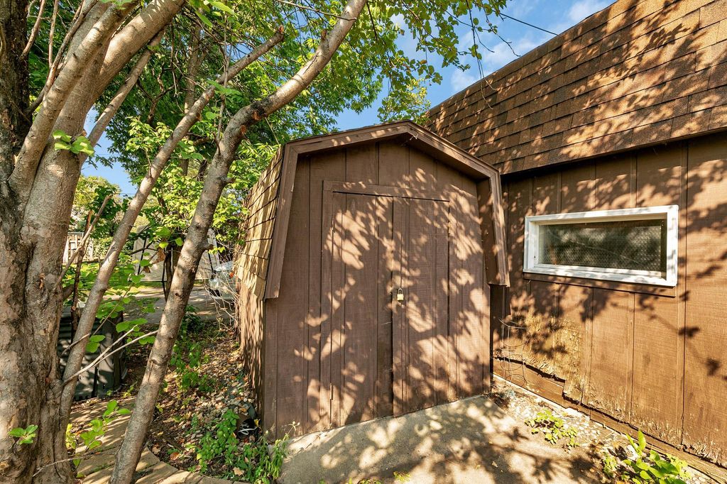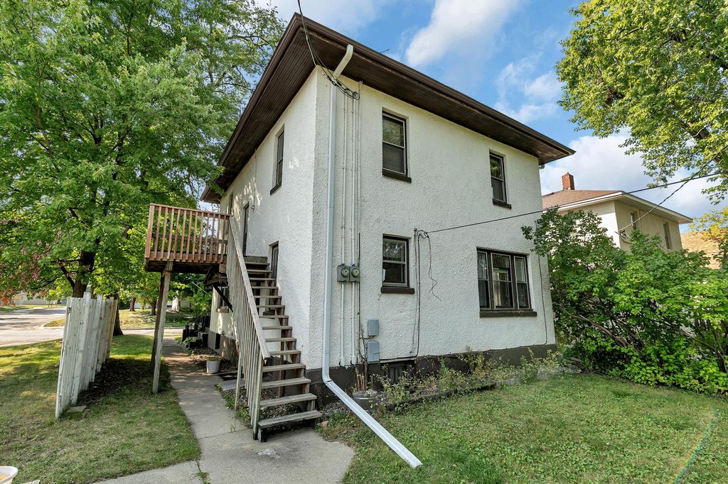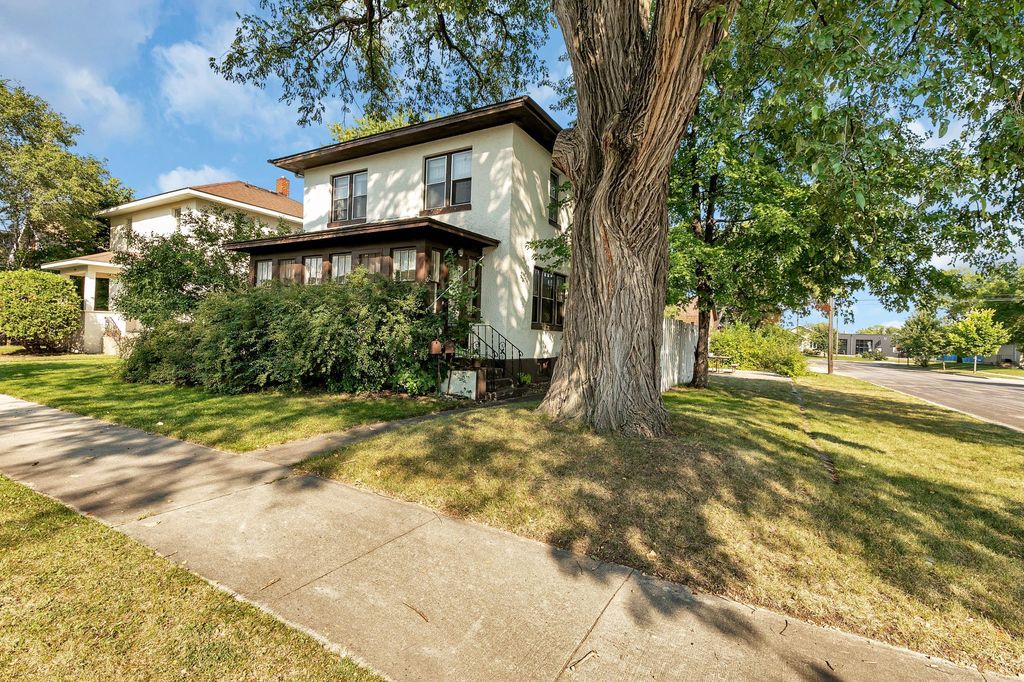 Welcome to a charming residence that tells a story of comfort and potential. Nestled on a desirable corner lot, this inviting home boasts stucco siding and architectural shingles - newly installed in 2010 on the house and 2017 on the garage. Seamless rain gutters complement the exterior, while a covered front porch offers a warm welcome to visitors. Step inside to discover a spacious and elegant living environment. The main level features real hardwood floors that enhance the character and charm of the tall baseboards. The expansive dining room is perfect for gatherings, and the kitchen is a true highlight with its raised oak cabinetry and a new gas range installed in 2018. All kitchen appliances will remain, making this space ready for your culinary adventures. From the kitchen window you will notice a very generous size concrete patio, measuring 15 by 28 feet, ideal for outdoor entertaining. The upper level is thoughtfully designed with three bedrooms, plus an additional room that can serve as a fourth bedroom or versatile bonus space, complete with a convenient kitchenette. The home offers full bathrooms on the main and upper levels for your convenience. The main level also features built-in cabinets and drawers under the stairs, adding both practicality and character. The lower level boasts a wet bar, a laundry area equipped with a washer and dryer that will stay, and a utility sink. A spacious storage room nearby provides ample space for all your needs. Modern comforts include a high-efficiency Trane forced air furnace, central air conditioning, and a gas water heater. The electrical system is up to date with a breaker panel, and the home's potential extends further with the possibility of conversion into a duplex. This property awaits your personal touch. With a bit of effort, it could be transformed into a truly stunning residence. Discover the possibilities and make this house your home. Check out the 3-D virtual tour of an interactive look inside!