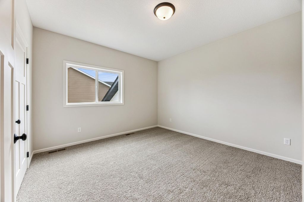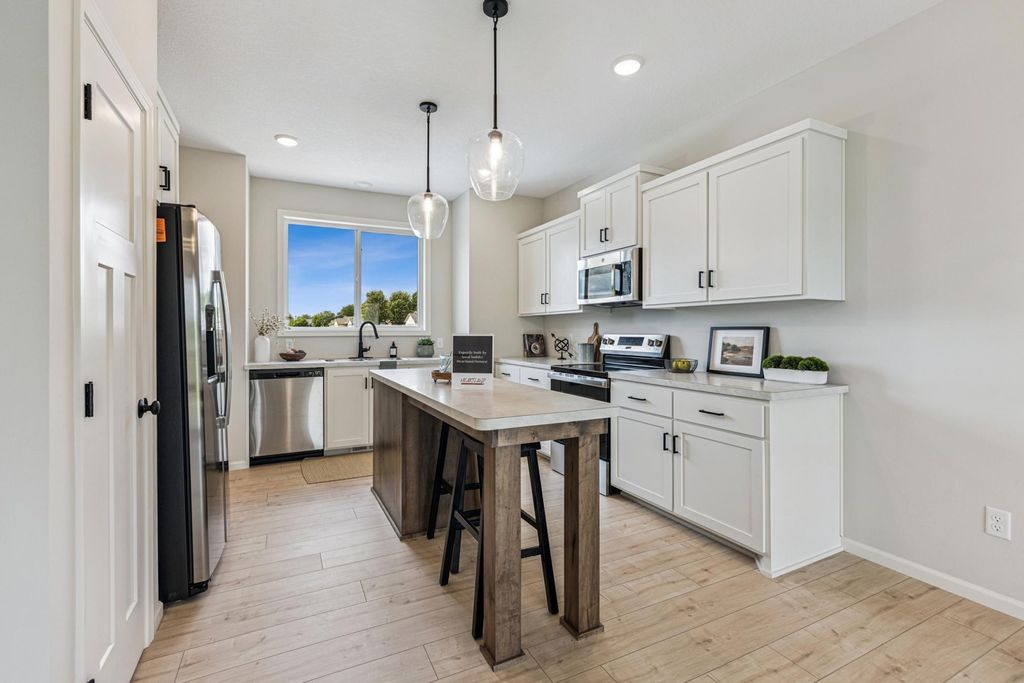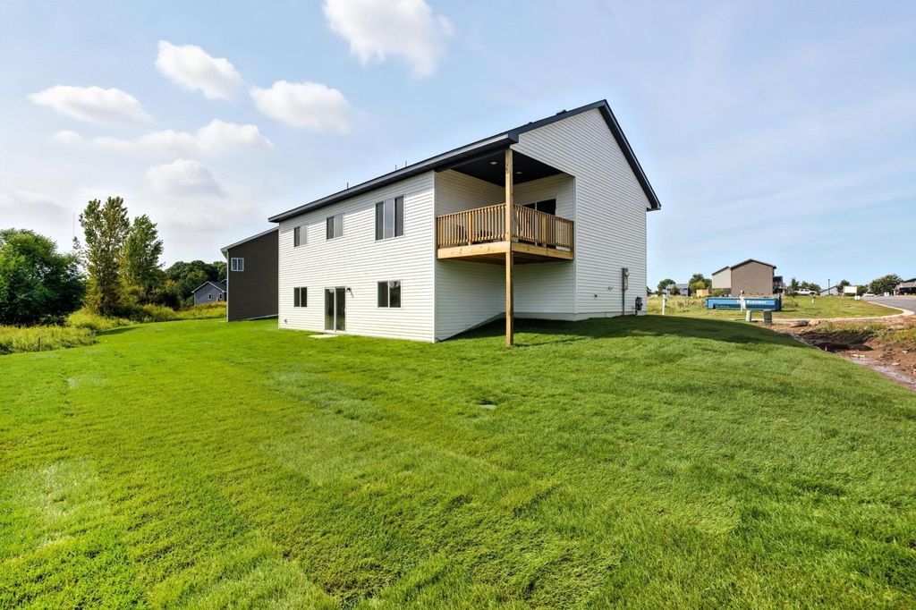 Welcome to this beautifully crafted home by local builder Heartland Homes, nestled in the desirable Windsor Estates community - complete with sidewalks and a quick commute to downtown St. Cloud. This thoughtfully designed home features 3 bedrooms and 2 bathrooms, all on one level including a private bath in the primary suite. Step inside to find a warm, inviting interior finished in Sherwin Williams' Drift of Mist - a soft, neutral color - paired with crisp White Dove millwork. The kitchen showcases mission-style poplar cabinets with soft-close drawers, black hardware, laminate countertops, and a full set of kitchen appliances (refrigerator, range, microwave, dishwasher). Both bathrooms are elevated with elegant marble countertops. Clean curb appeal with vinyl siding, full sod, and a 3 stall garage with concrete driveway. Secluded backyard overlooking peaceful natural scenery! Don't miss this opportunity to own a quality-built home with stylish finishes in a convenient location!