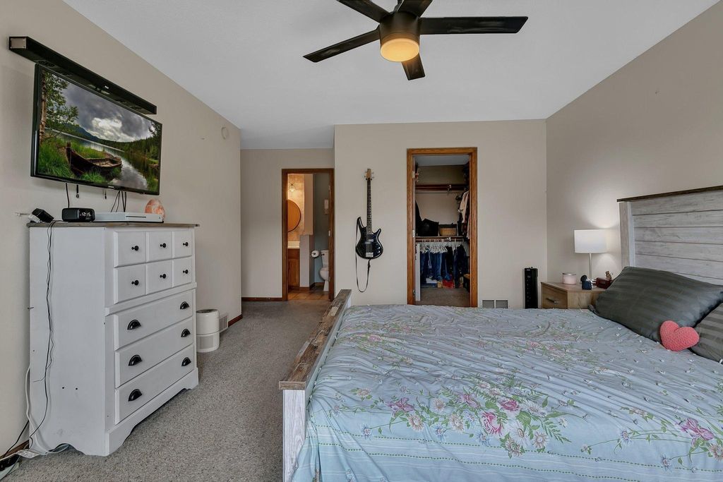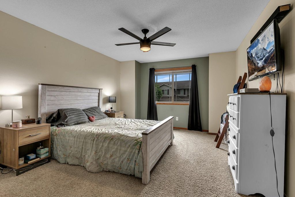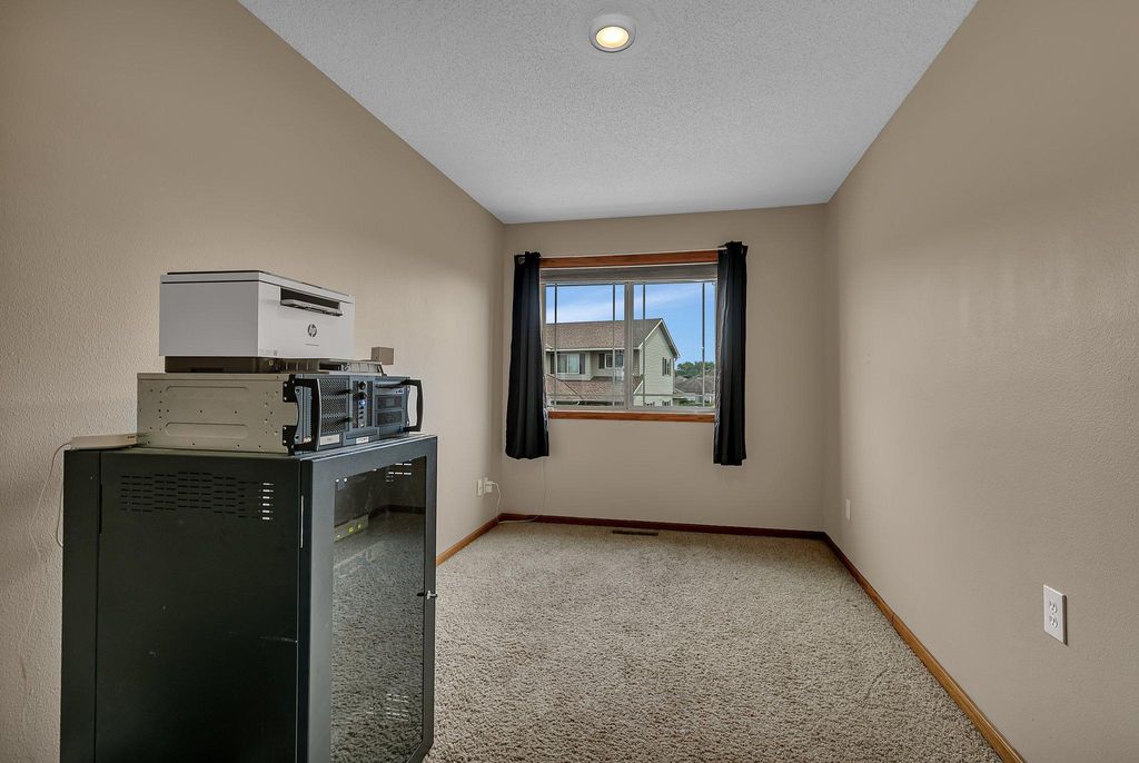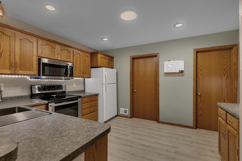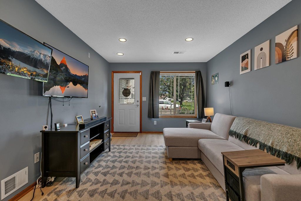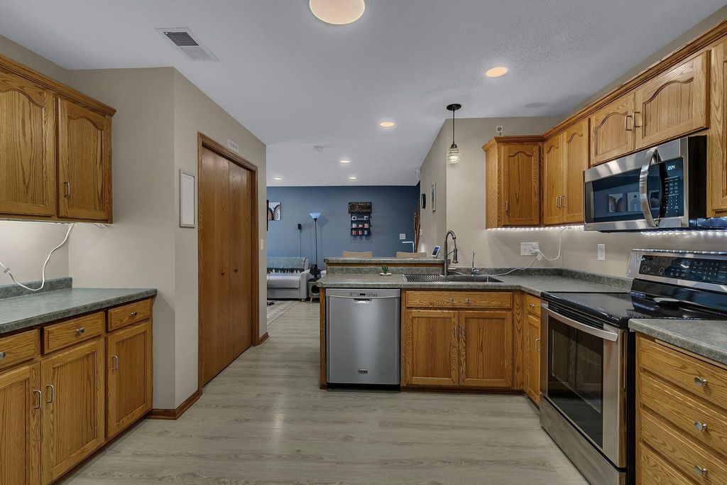 Own this low maintenance townhome; featuring a 2-stall insulated garage, 3 bedrooms & laundry on the same level & new roof! Appreciate having lawn care & snow removal w/lower monthly dues. Drive up to the cozy front patio and newly sealed asphalt driveway. Kitchen features SS appliance, eat-in counter, coffee bar & vinyl planking flooring. Steps from the kitchen is the convenient half bath. Living room is spacious; perfect for entertaining guests. Upper lever features 3 bedrooms and the laundry room. Primary bedroom is large with a walk-in closet. Enjoy having a walk-through full bath connected to your bedroom. Updates include: recessed lighting, water softener, microwave & more. You will love this peaceful setting with walking trails; located in a wonderful community. Book your showing today!