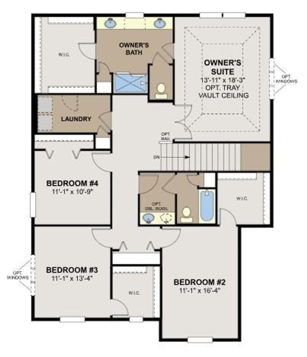 Beckett Plan - This 4758 sq ft home features 5 bed, 4 bath, and an oversized 3-car garage on a walk out lot complete with irrigation system and full sod. The spacious rec room on the lower level has oversized windows that look to the south, on the main level features a tech nook, prep kitchen flex room and morning room addition off the rear of the home with a maintenance free deck. The kitchen is sure to impress with a gourmet layout, featuring quartz countertops, upgraded morning kitchen prep kitchen, stainless-steel gas cooktop, stainless steel built-in convection microwave and oven combo, a stunning wood hood with an oversized island to match. You'll love the spacious, open-concept layout that the main level presents! Upstairs, the stunning owner's suite. All of the bedrooms upstairs are oversized with a laundry room conveniently located next.
