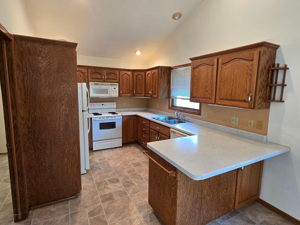 Welcome to this expansive, one owner rambler on .7 acres in the city, easily updated to a 3 bed, 2 bath with a nice lower level layout! Step up to the front porch and inside to the spacious living room with vaulted ceilings. To the left you will find the nicely done kitchen and dining room, and from there you can relax in your 4 season porch with great natural light. Just out your porch is a quiet backyard as well. Off the kitchen you have the combination laundry/mudroom which leads to the oversized 2 stall garage. To the right of the entry you will find the large primary bedrooms, second bedroom, and full bath. Lower level of the home is ready for your finishing touches! Already plumbed for a potential bar area in the large future family room, an egress window already in place for another bedroom with WIC, and set up for another bath. Outside you will find a large patio area with plenty of evening shade to enjoy! Recent addition of a very nice 16x10 shed on the property, along with plenty of yard to play in, finishes off this great property. Just down from Quarry Park, easy access to schools, businesses, and entertainment. Schedule your showing today!