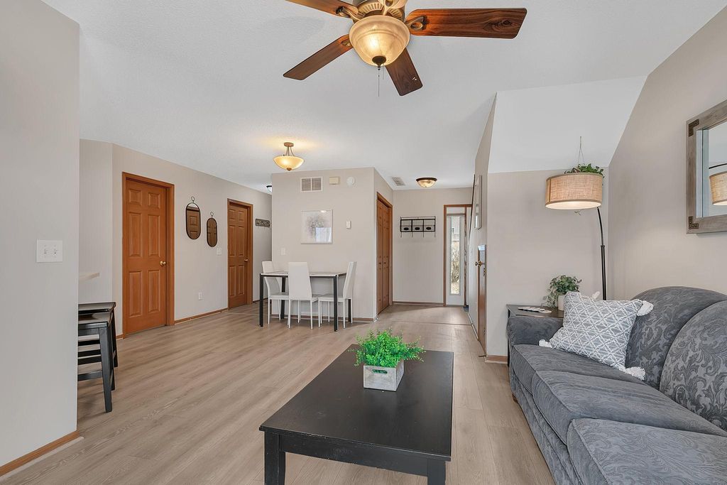 Move in ready. Enjoy easy living in this thoughtfully designed home featuring an open floor plan, stunning plank flooring, large closets & additional storage throughout, fresh paint & tons of natural light. Smartly designed kitchen with ample prep and storage space includes some newer appliances, a breakfast bar & a generous walk-in pantry. Upstairs, you'll find three same floor bedrooms plus convenient upper-level laundry -- making daily routines simple and efficient. Step outside to your back patio, perfect for relaxing evenings. With in-ground sprinklers, lawn care and snow removal taken care of, so you can spend more time enjoying the nearby walking trails and park, instead of worrying about maintenance. Welcome home!