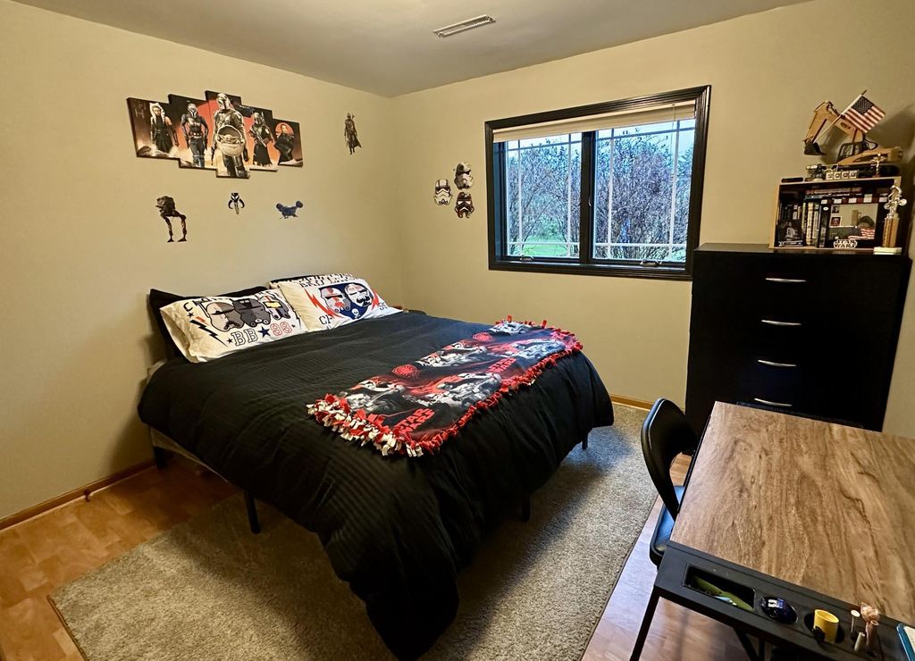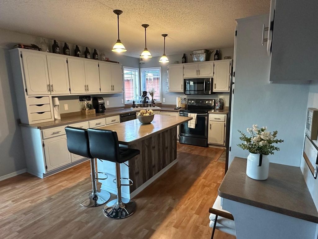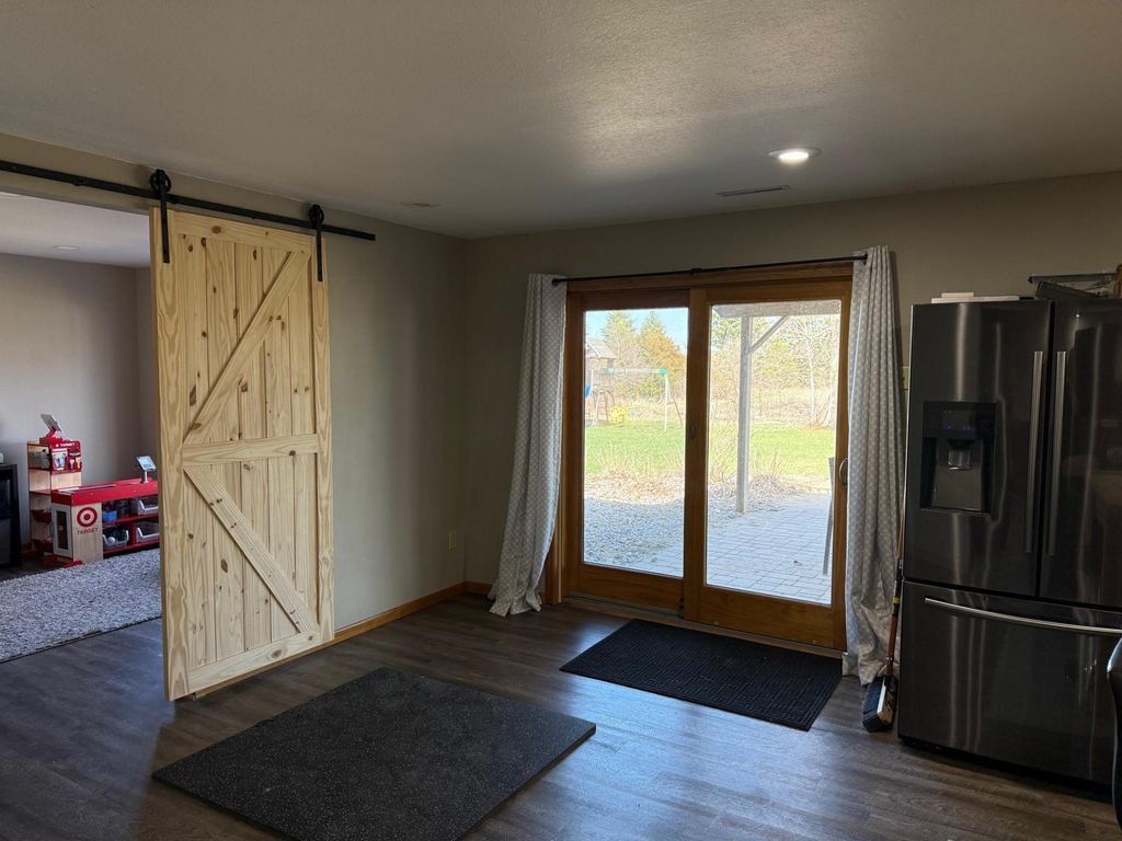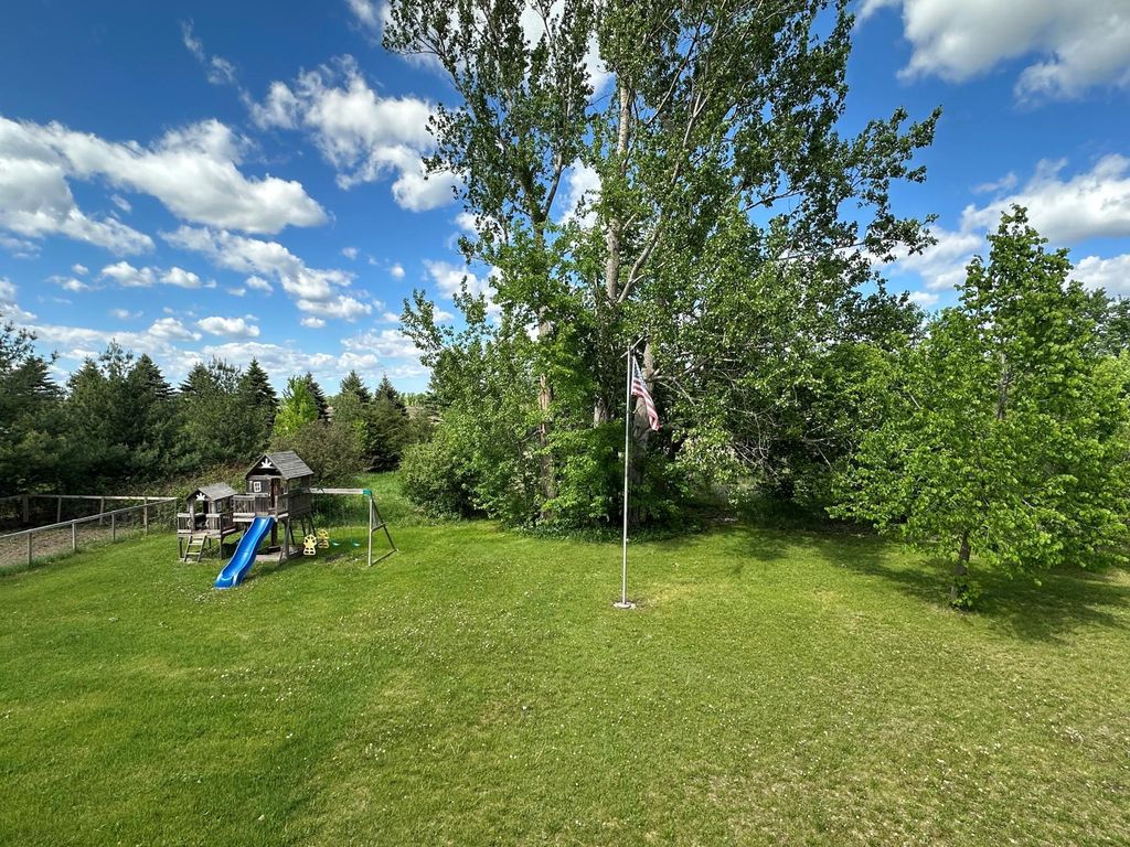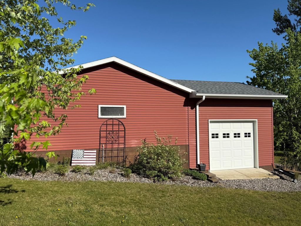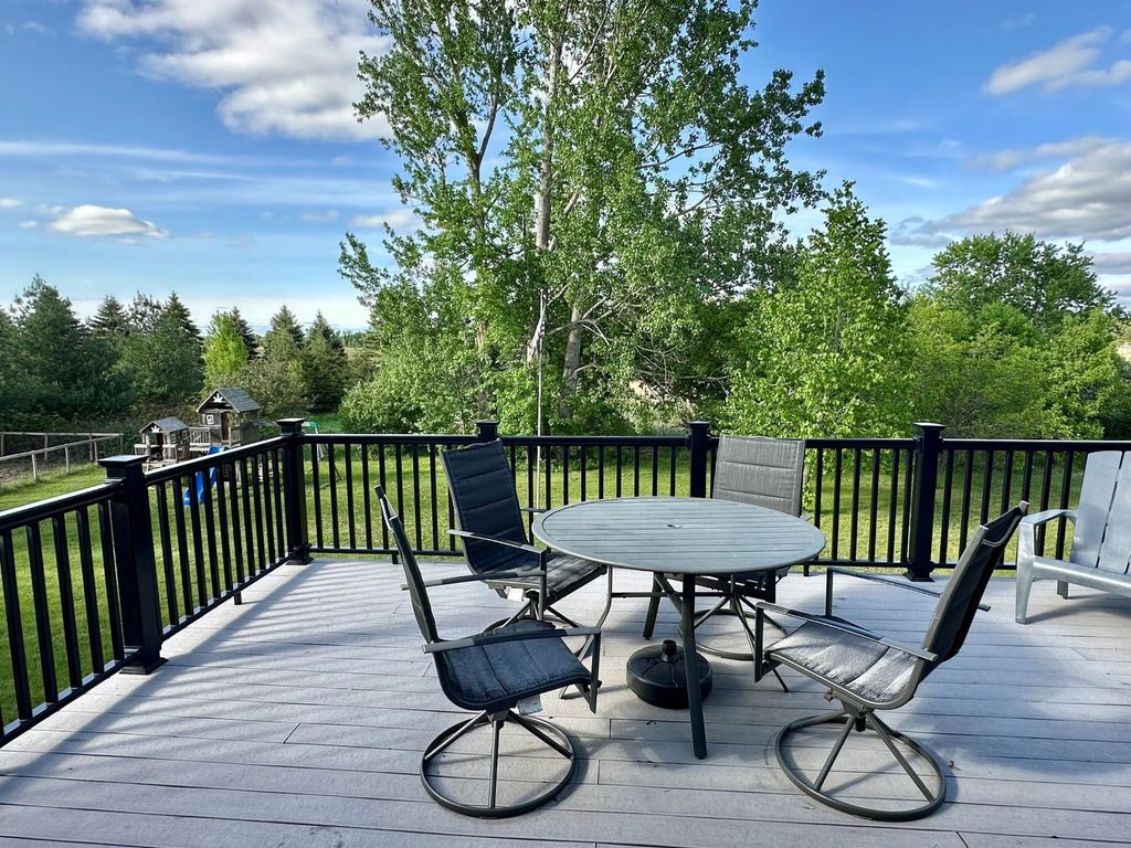 Enjoy country living with modern comforts just minutes from everything! Hard to find 4 bedroom, plus a den/office that could be used as a 5th bedroom, 2 bath rambler on private 1.27 acre lot with stunning sunsets off the large back deck or patio from the walkout basement. Enjoy your morning coffee on the covered front deck area, plenty of garage space with 2 stall attached with an additional heated, oversized 1 stall attached with 12.5 foot ceilings perfect for a shop or extra storage. Home offers space, comfort, functional layout with modern finishes - office in the basement could easily be utilized as a 5th bedroom. New roof and back deck in 2022. All new Andersen windows installed in 2012, additional garage built in 2014. Additional outbuilding allowed for those looking for extra garage/shop space.